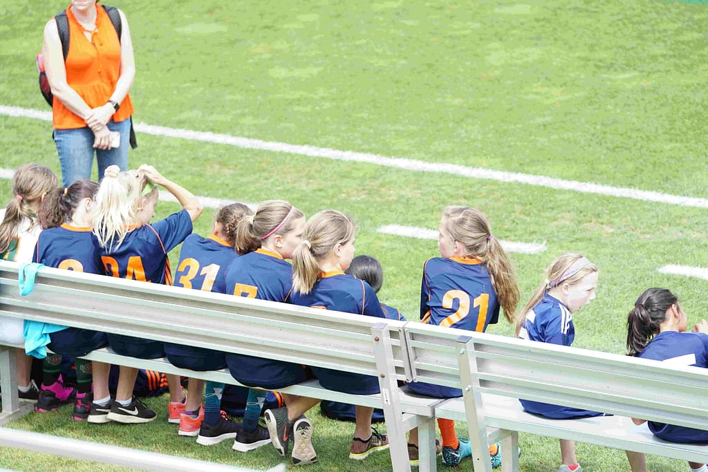 In soccer, the team bench often takes the form of dugout benches or sideline setups, sometimes with a protective soccer tent overhead. Players sit on soccer chairs or collapsible benches, ready to substitute in.